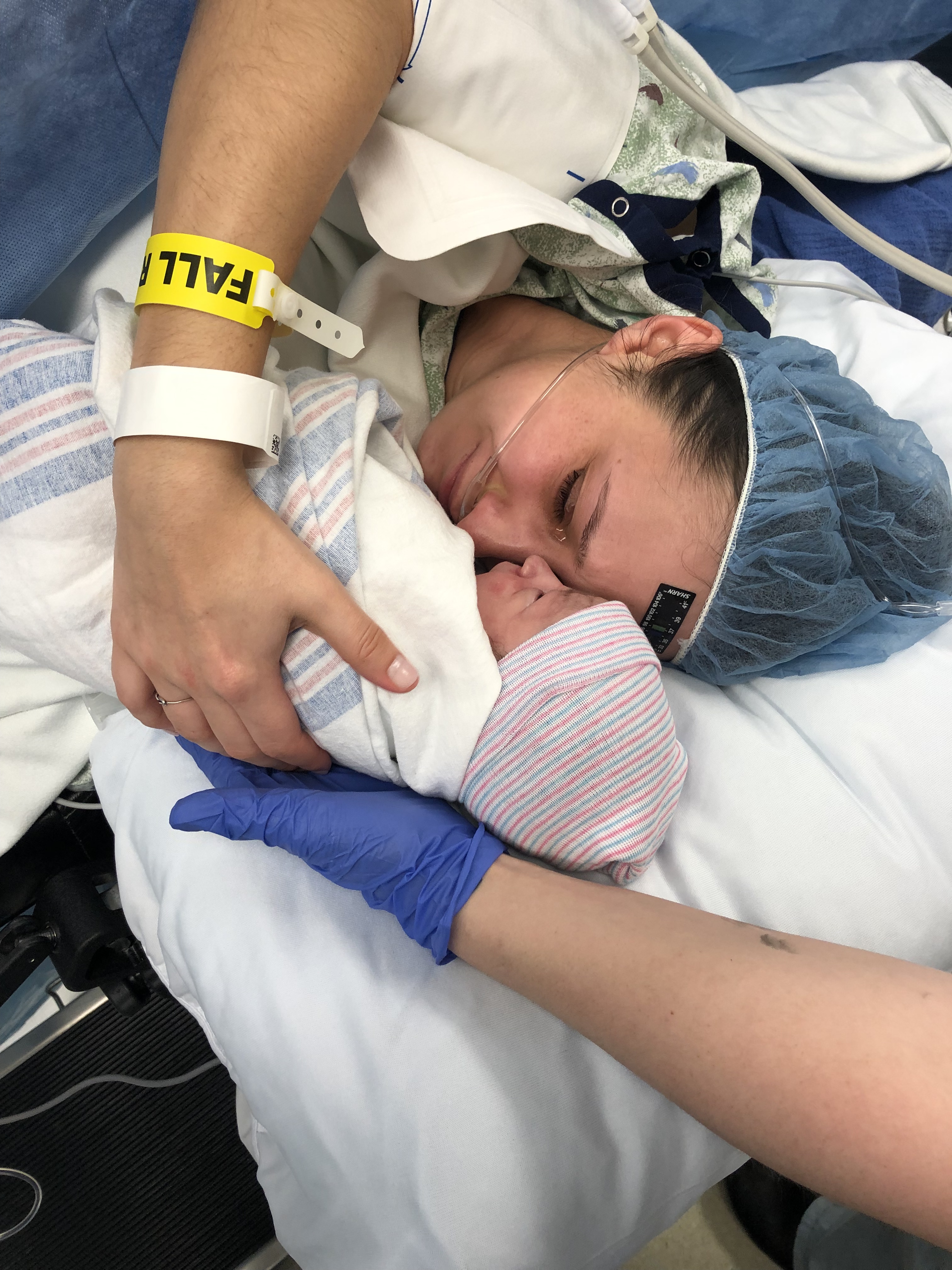 About an hour passed and they nurses came to check me for progress, after so received my epidural. Not much has changed and it would continue that way with me being flipped over and over to keep your heart rate stable. Your heart rate was dipping even without the stress of contractions so after five hours of flipping and barley any progression (5cm) Dr. Rinala came back in. I knew in that moment what she was going to say. It was time for an emergency c-section, because they were concerned for your life with stronger contractions and the stress of a vaginal birth. There was zero hesitation with this decision, I was willing to do or endure whatever came my way for your life.
